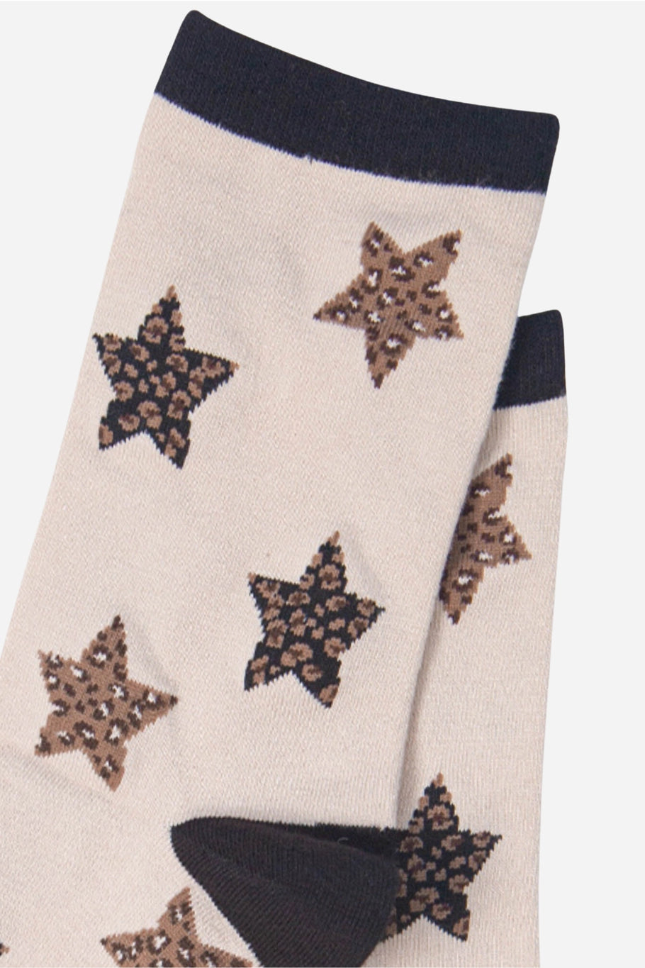 These fun cream socks feature a stylish animal print star design, making them a great gift choice. Keep your feet comfy and looking stylish with these unique socks.