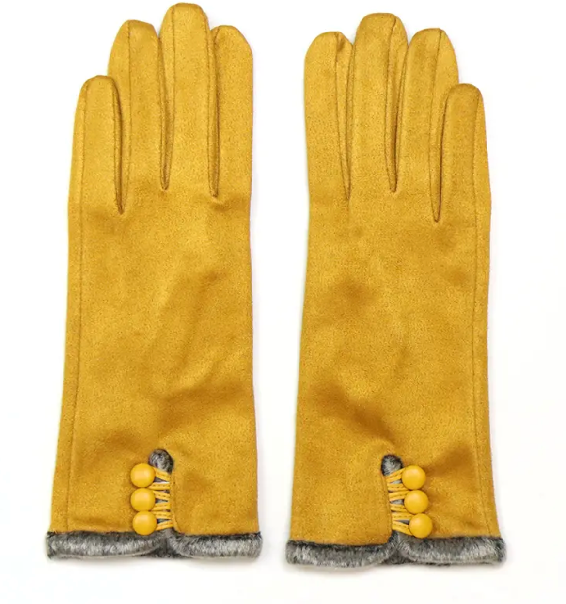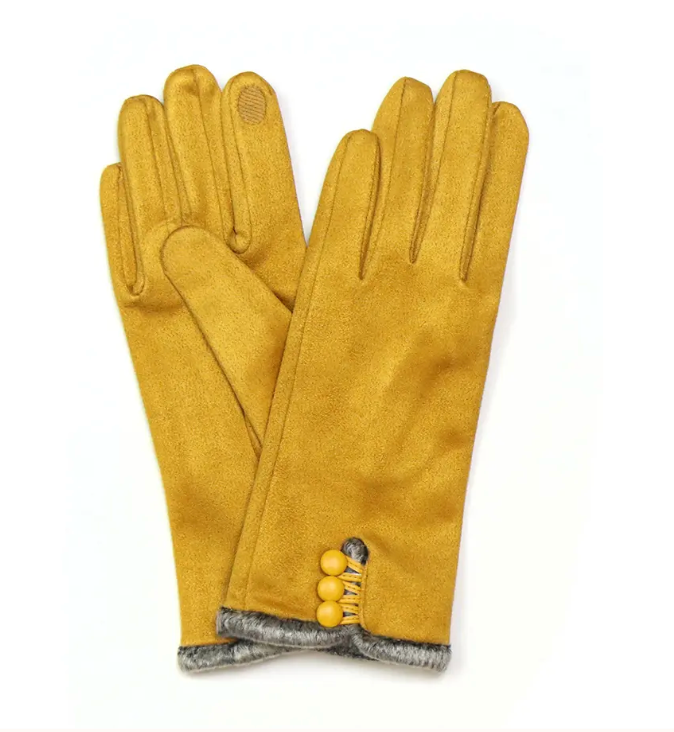 Mustard faux suede with button detail gloves